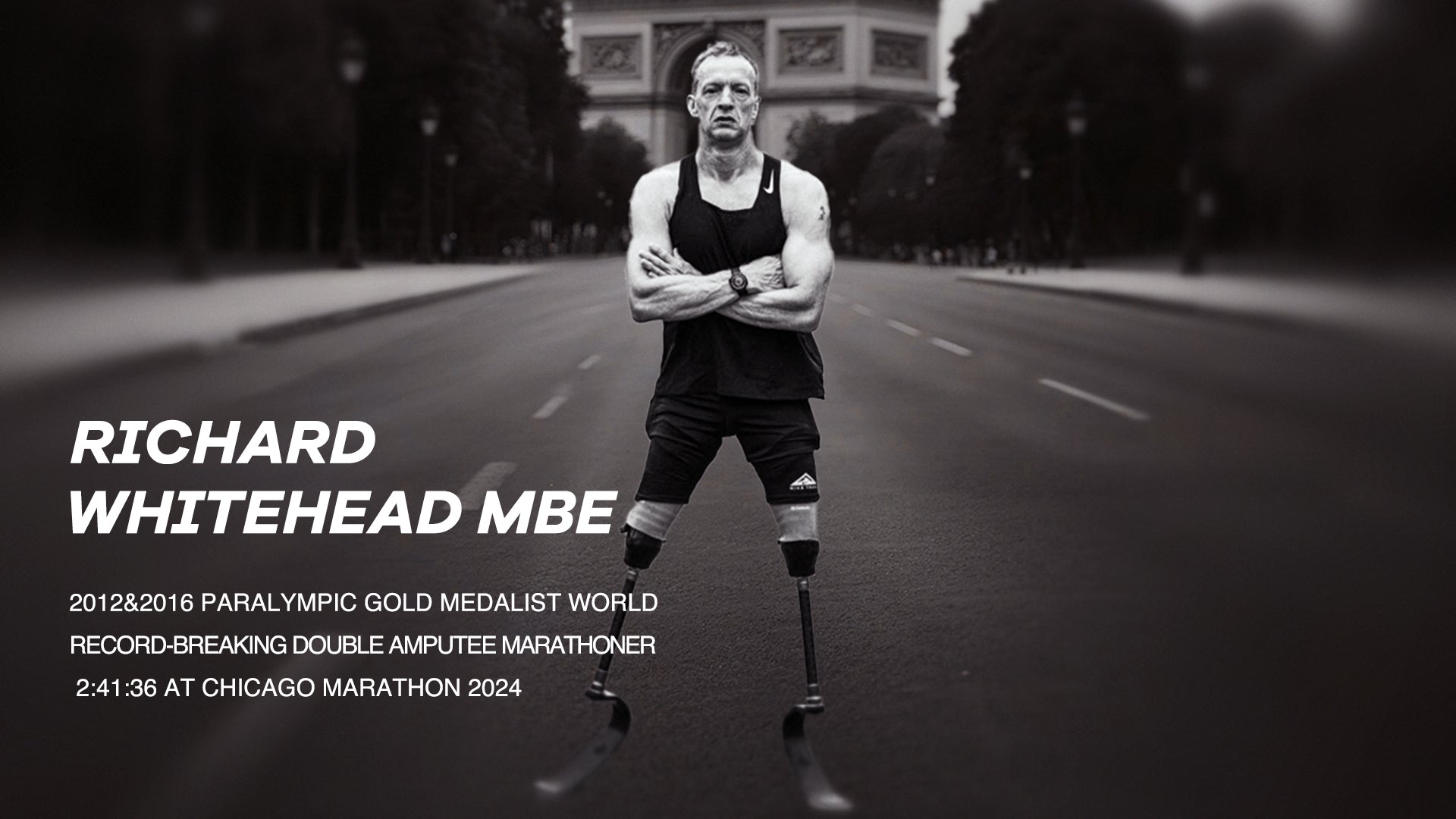 Richard Whitehead MBE is more than just an athlete – he is a symbol of resilience. Born without lower legs, he began his training on his knees using sports cups, before completing the New York Marathon just 13 days after receiving his first running prosthetics. Since then, he has won Paralympic gold, set multiple world records, and completed 90 marathons – including 40 marathons in 40 days across the UK.