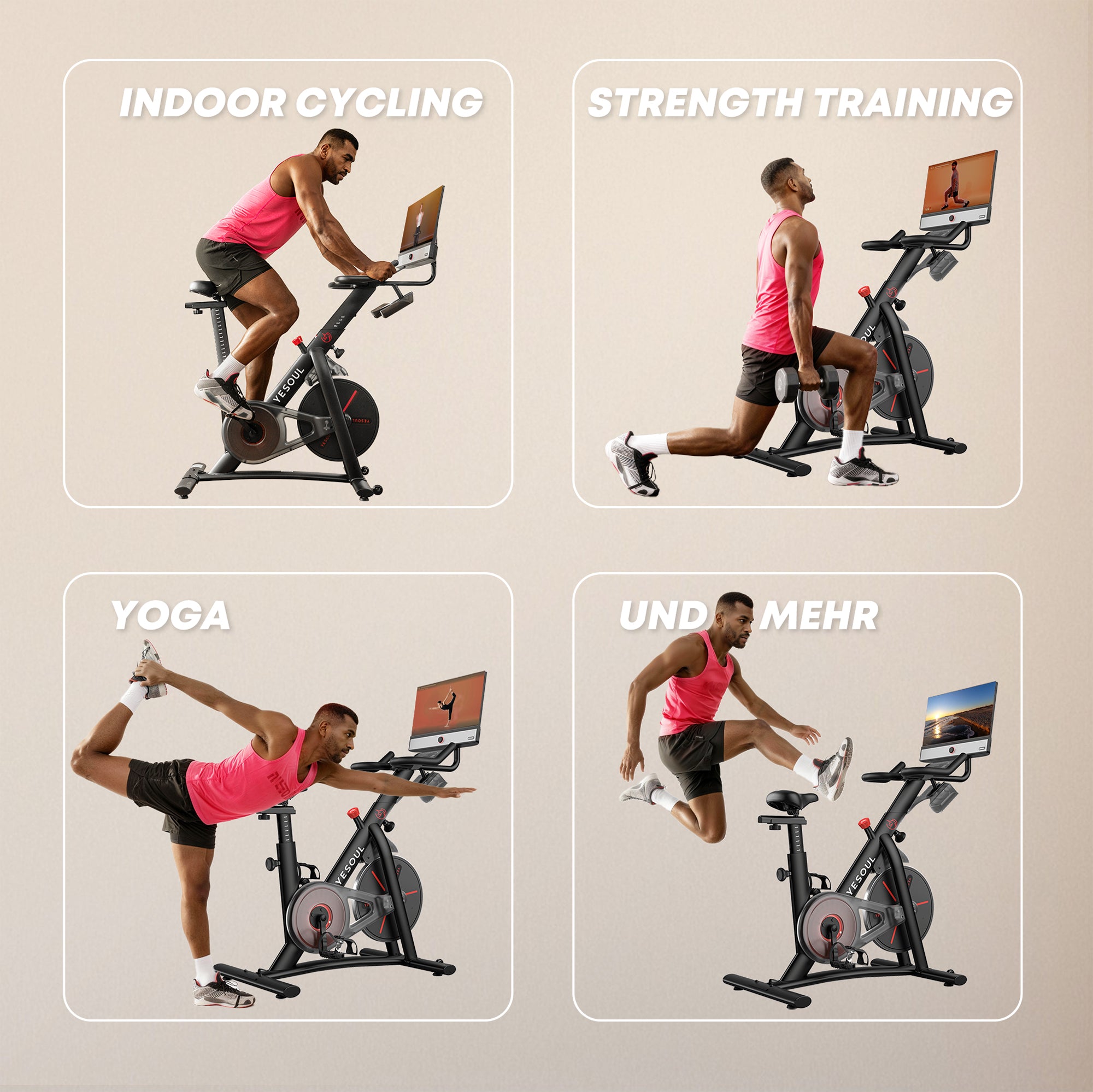 Der drehbare Full-HD-Bildschirm bietet ein gestochen scharfes, klares Bild. Ob beim Cycling, Bodentraining oder Yoga – er lässt dich ganz in die Bewegung eintauchen und sorgt für ein leichtes, freies Gefühl.