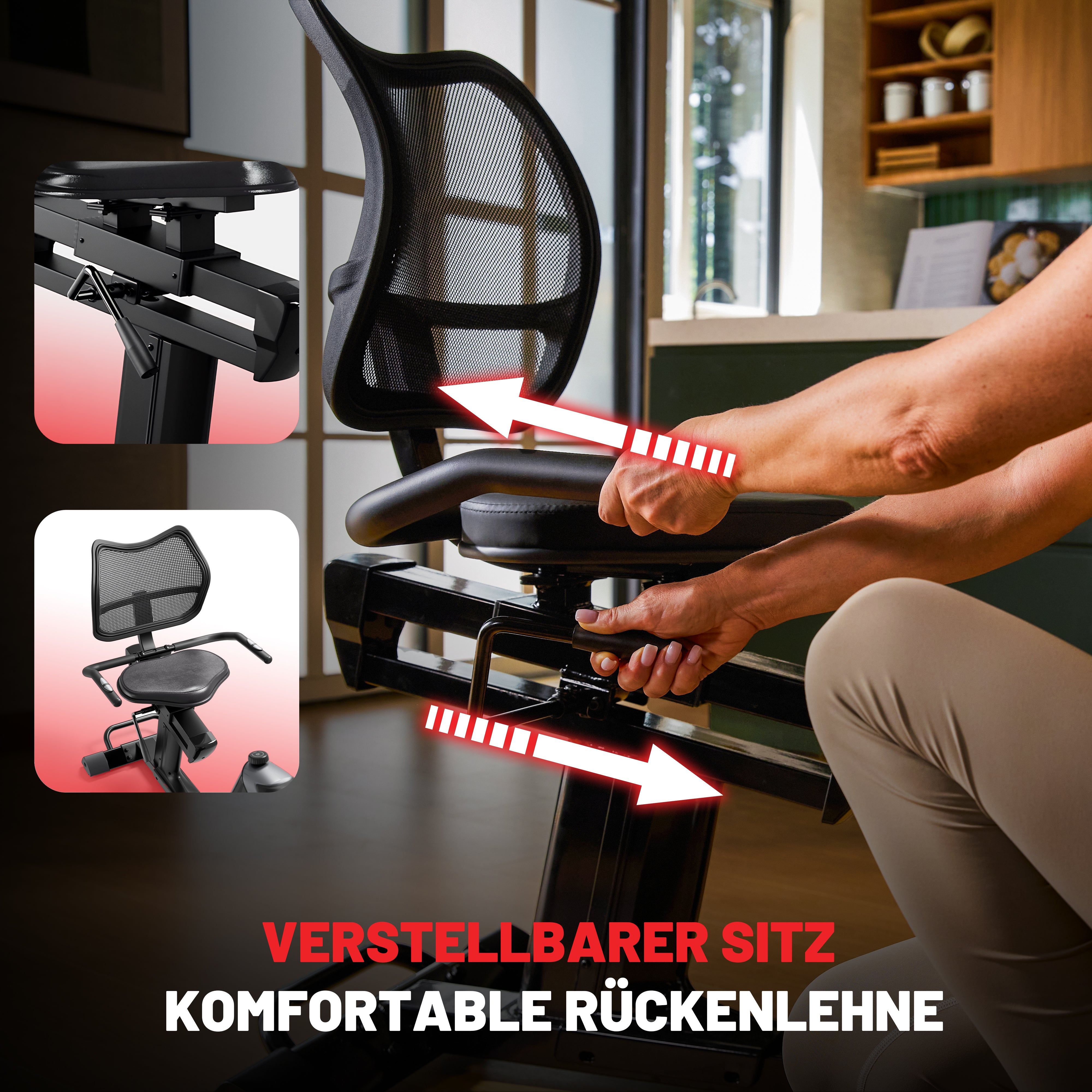 Das gelenkschonende Design schützt effektiv Knie und Rücken. Der geräumige Sitz mit vollständiger Rückenstütze sorgt auch bei längeren Trainingseinheiten für maximalen Komfort. Unabhängig von Größe, Gewicht oder Alter können Sie die perfekte Sitzposition über die Sitzverstellung finden! Das robuste und stabile Design ermöglicht Ihnen, jede Fahrt sorgenfrei zu genießen.