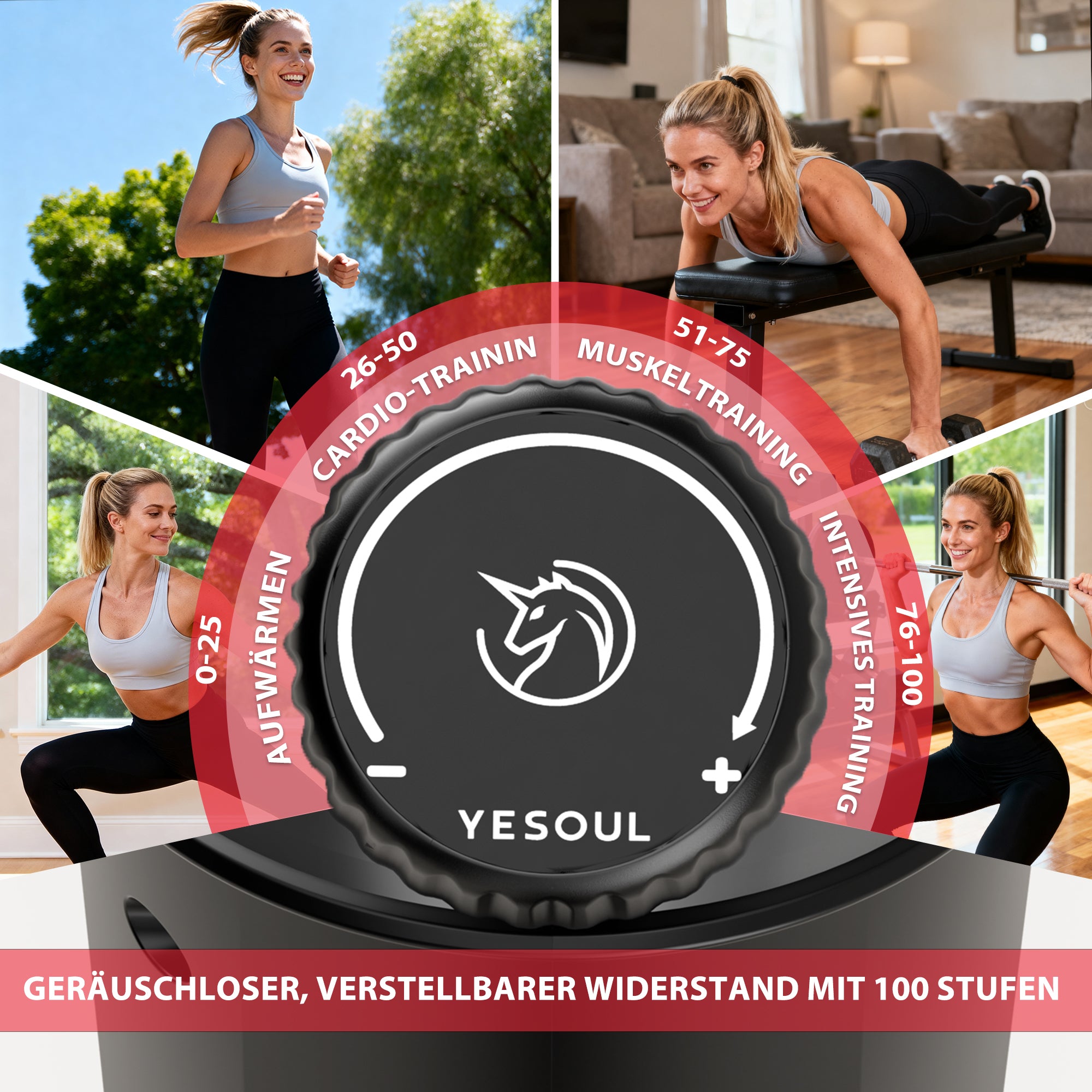 Passen Sie jede Fahrt mit dem einstellbaren Widerstandssystem an. Ob sanftes Aufwärmen oder intensive Cardio-Herausforderung – drehen Sie einfach den Knopf, um Ihr perfektes Niveau zu finden. Ein personalisiertes Training, das sich mit Ihrem Fortschritt weiterentwickelt.