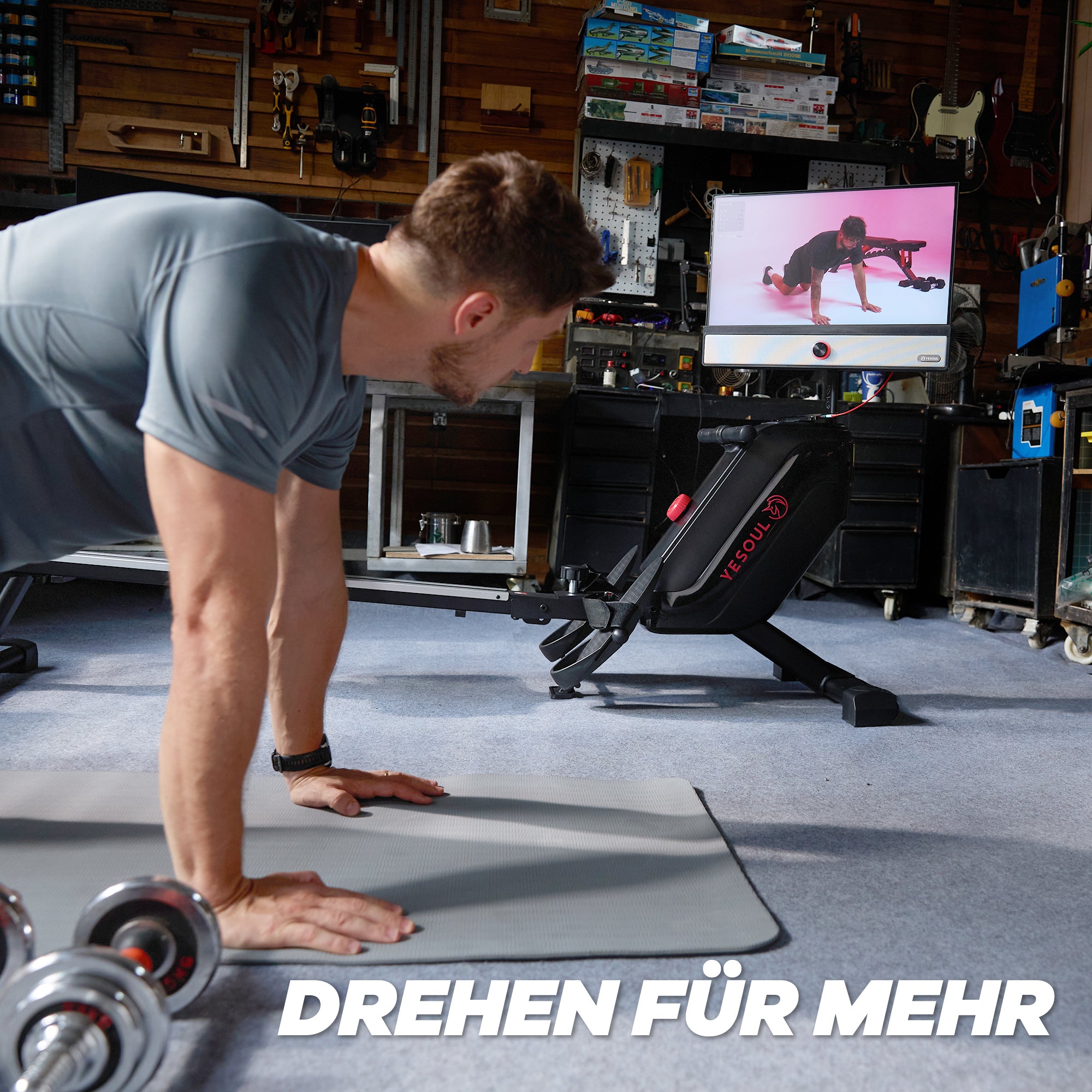 Wechseln Sie mühelos zwischen einer Vielzahl von Kursen wie Rudern, Stretching, Krafttraining und mehr – einfach durch Drehen des Bildschirms. Alles komfortabel an einem Ort vereint.