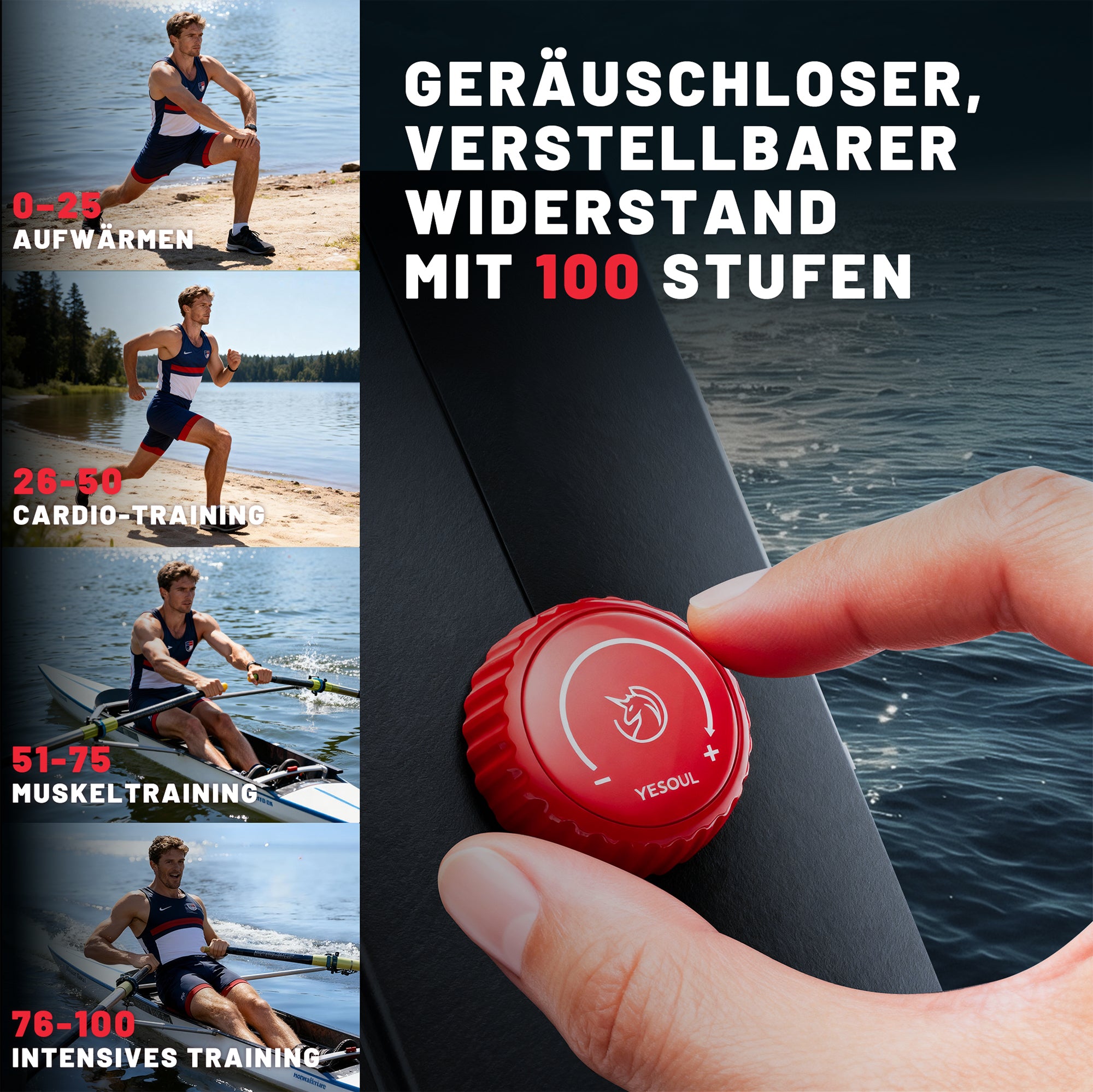 Ein speziell entwickeltes, leistungsstarkes Magnet-Widerstandssystem sorgt für ein ruhiges und gleichmäßiges Rudergefühl. Ideal für das Training zu jeder Tageszeit, ohne andere Familienmitglieder zu stören.